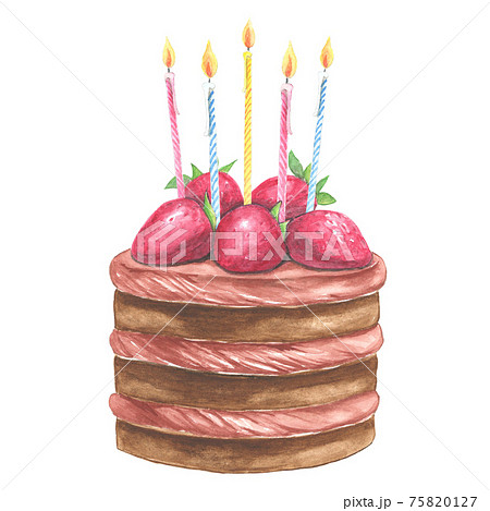誕生日ケーキ ロウソク5本付き 手描き水彩画 のイラスト素材